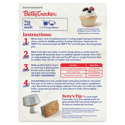 Sugar wheat flour. Nutritional information for Betty Crocker Angel Food White Cake Mix. Betty Crocker - Angel Food Cake Cupcakes.
